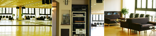 脚にやさしい床、鏡・音響設備を設置、スタジオは、使いやすく、踊りやすい、そして中・上級者もご満足いただける空間です。又、少人数から大人数での使用、本格的な設備でのスタジオ発表会など多様な目的にあわせてご利用ください。